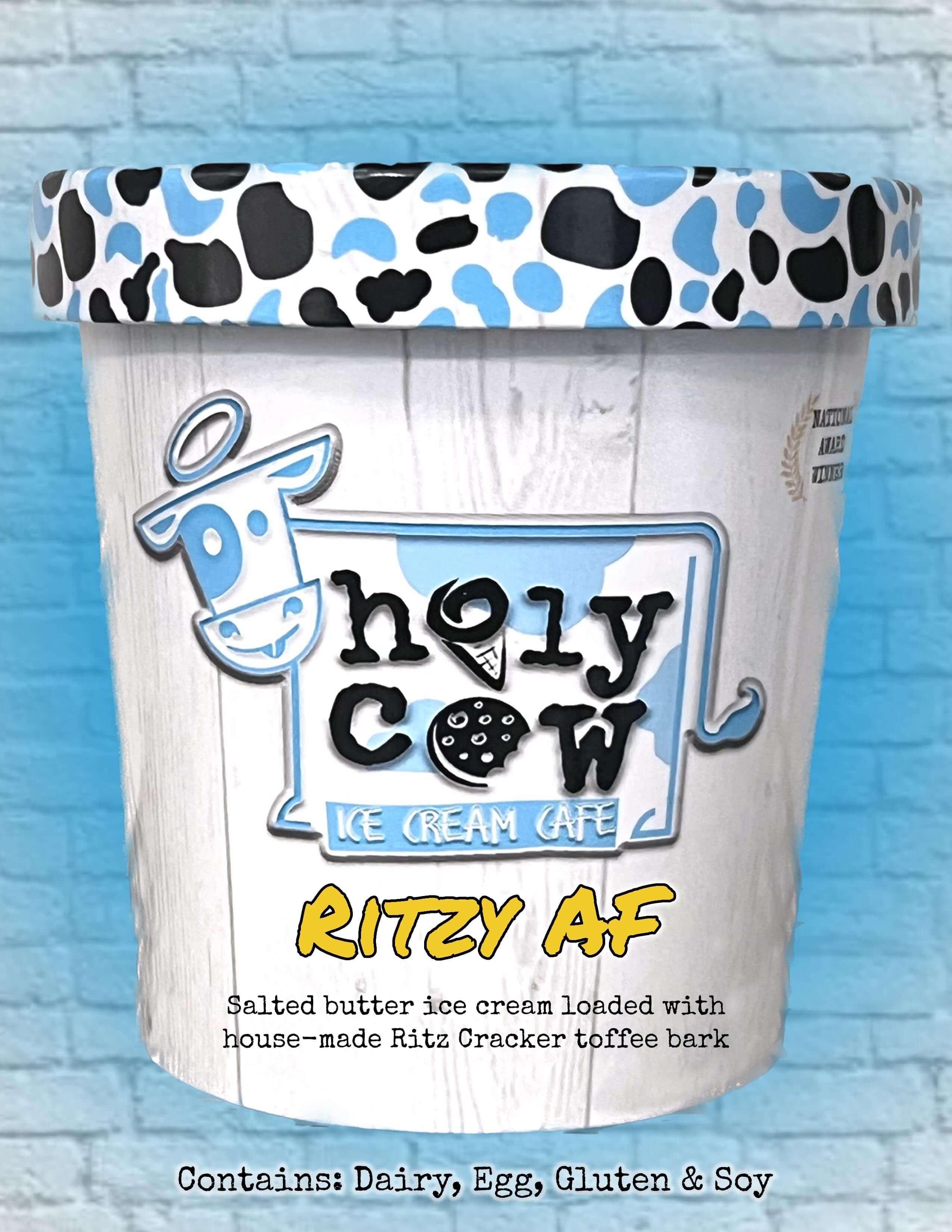 2022 North American Ice Cream Association National Flavor of the Year (1st Place) Salted Butter Cracker ice cream loaded with house-made Ritz Cracker Toffee Bark Contains: Dairy, Egg, Gluten & Soy
