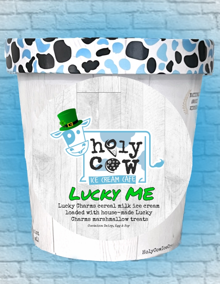 Lucky Charms cereal milk ice cream loaded with house-made Lucky Charms marshmallow treats Contains: Dairy, Egg & Soy