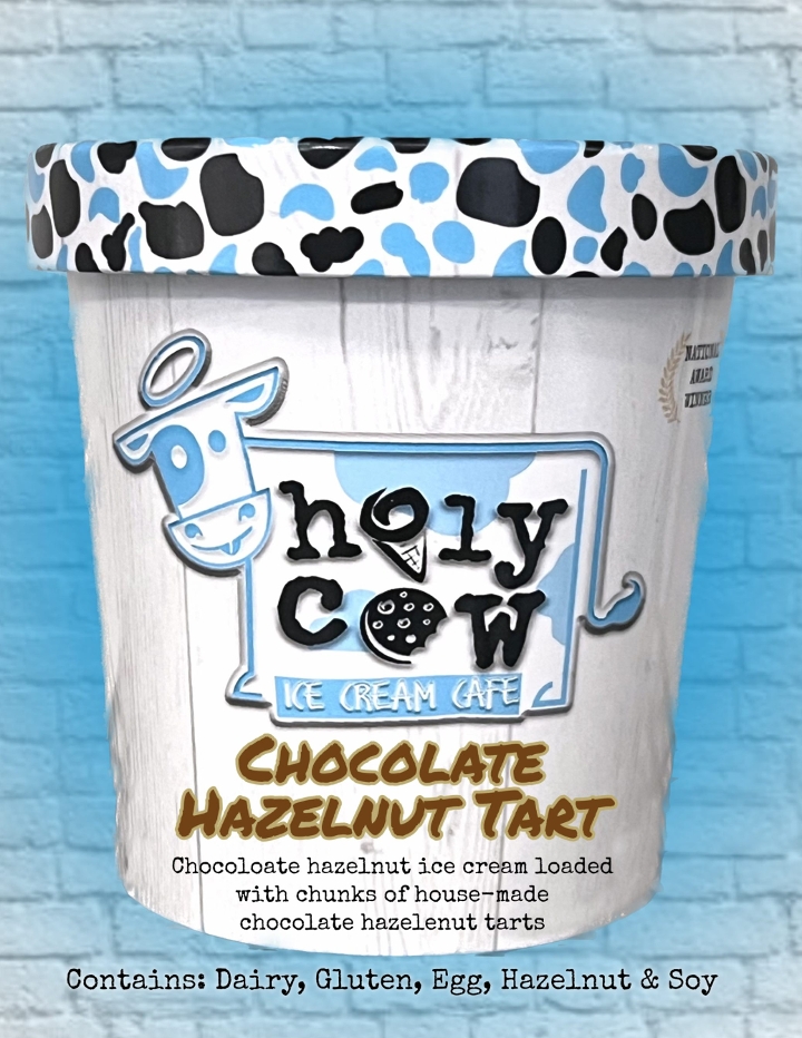 Chocolate hazelnut ice cream loaded with chunks of house-made chocolate hazelnut tarts Contains: Dairy, Gluten, Egg, Hazelnuts & Soy
