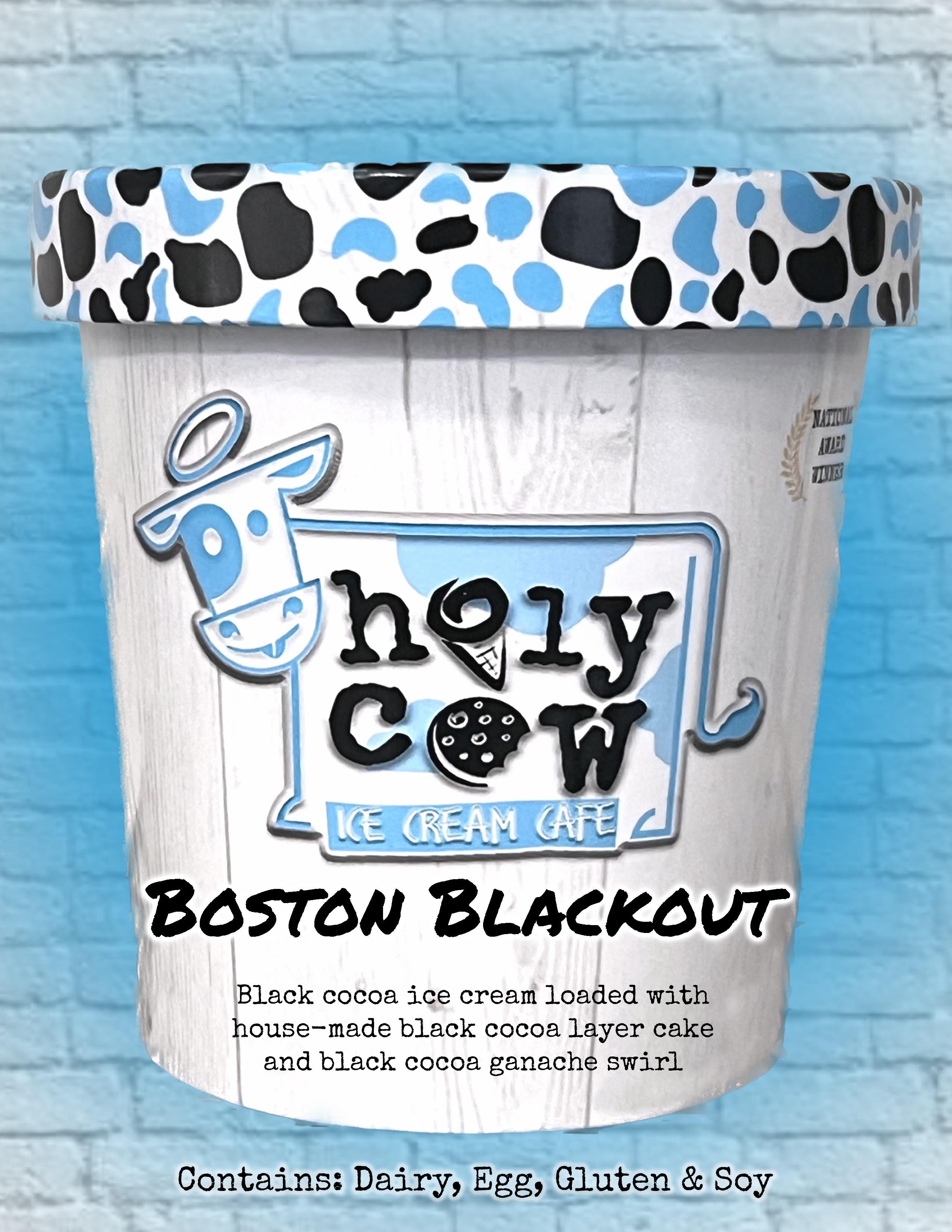 Black Cocoa ice cream loaded with house-made black cocoa layer cake and black cocoa ganache swirl Contains: Dairy, Egg, Gluten & Soy