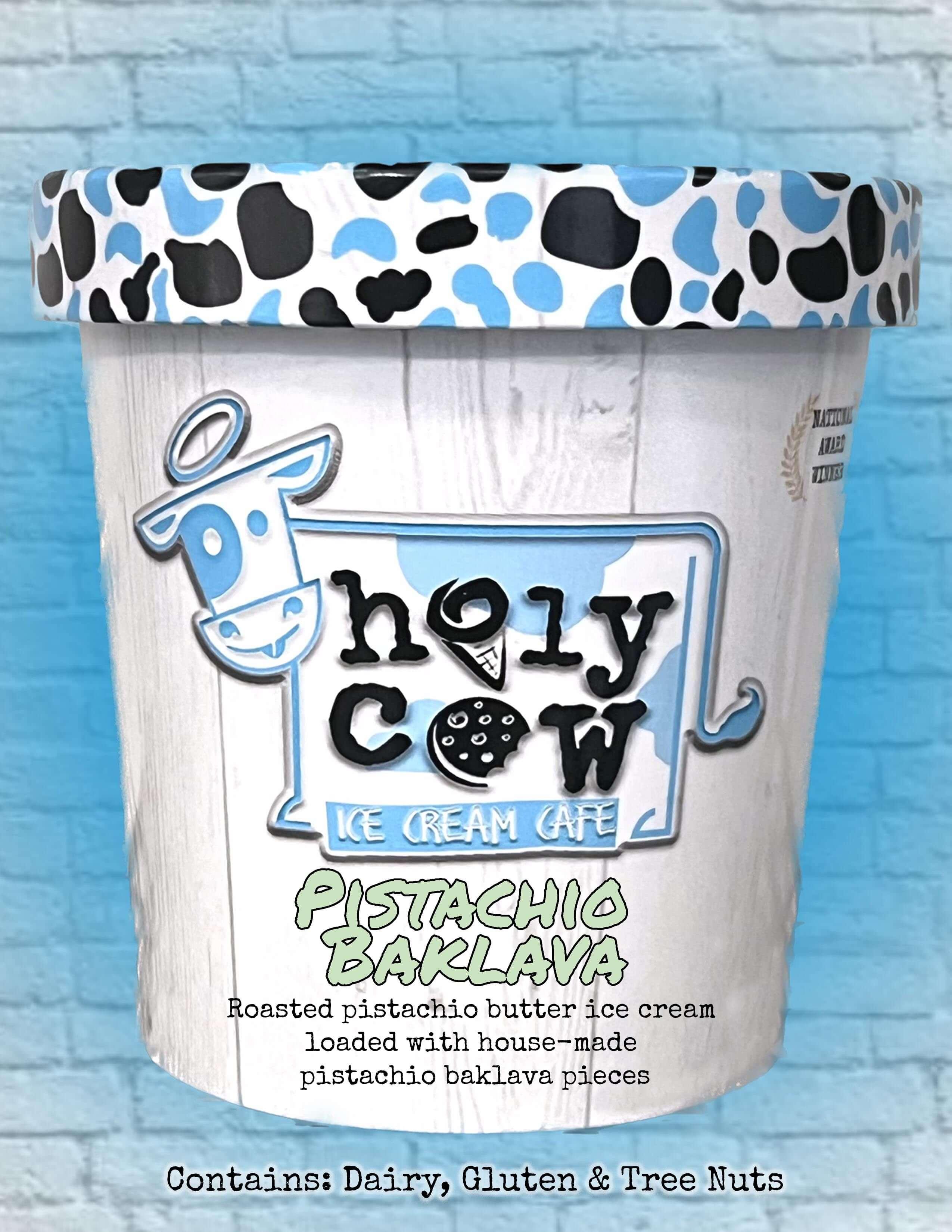 2024 North American Ice Cream AssociationFlavor of the Year (Northeast Region) Honey-infused pistachio butter base, with roasted pistachio toffee and bits of crispy phyllo dough Contains: Dairy, Gluten & Tree Nuts