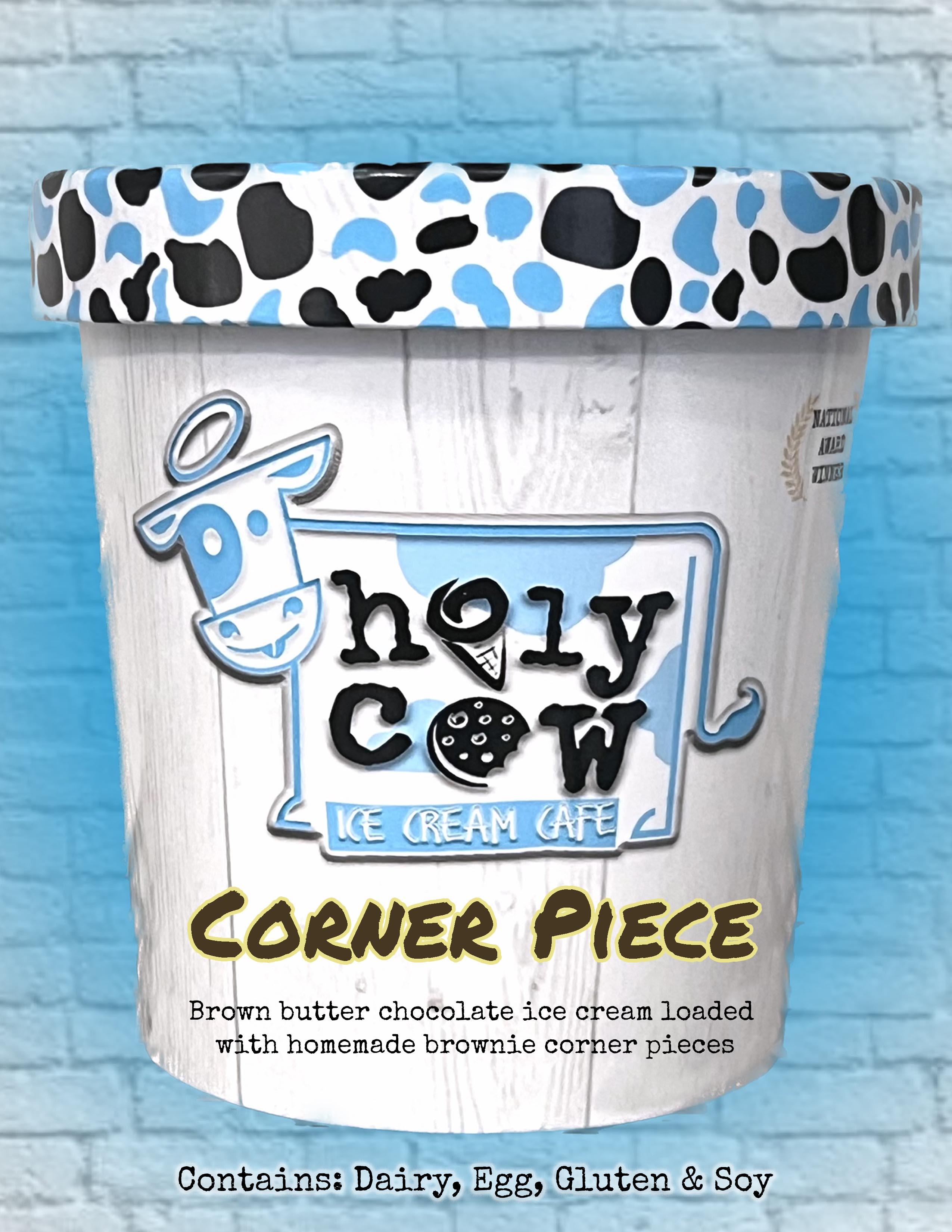 Brown butter chocolate ice cream mixed with homemade crispy brownie corner pieces Contains: Dairy, Egg, Gluten & Soy
